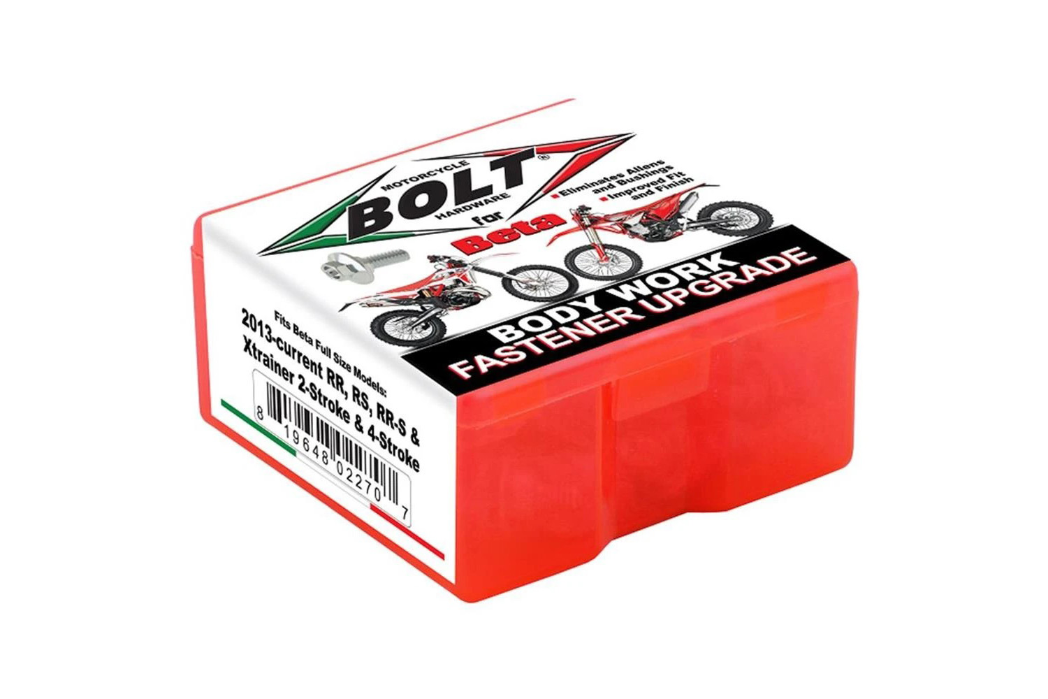 Das Schrauben-Kit beinhaltet alle spezifischen Schrauben zur Befestigung von Plastikteilen inklusive aller Schrauben und Scheiben für Kotflügel vorn/hinten, Startnummerntafel, Gabelprotektoren, Kühlerspoiler, Sitzbank und Seitenteile. Alle Teile sind im OEM Stil. Somit ist es einfach, eine fehlende Schraube und Abstandshalter zu ersetzen. Alle diese Teile erfüllen oder übertreffen OEM-Spezifikationen. Produziert in den USA.