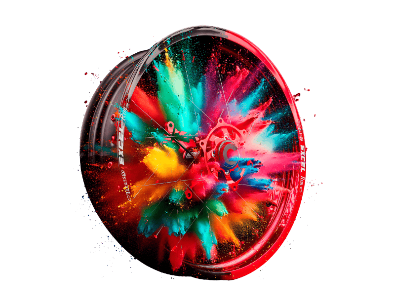 BETA RR430 2020 SuMo-Radsatz 5,00 mit Ruckdämpfung, schwarzen Felgenring (Excel), roter Nabe, schwarzen Speichen und roten Speichennippeln inkl. Motomaster Adapter schwarz und Bremsscheibe in Flame