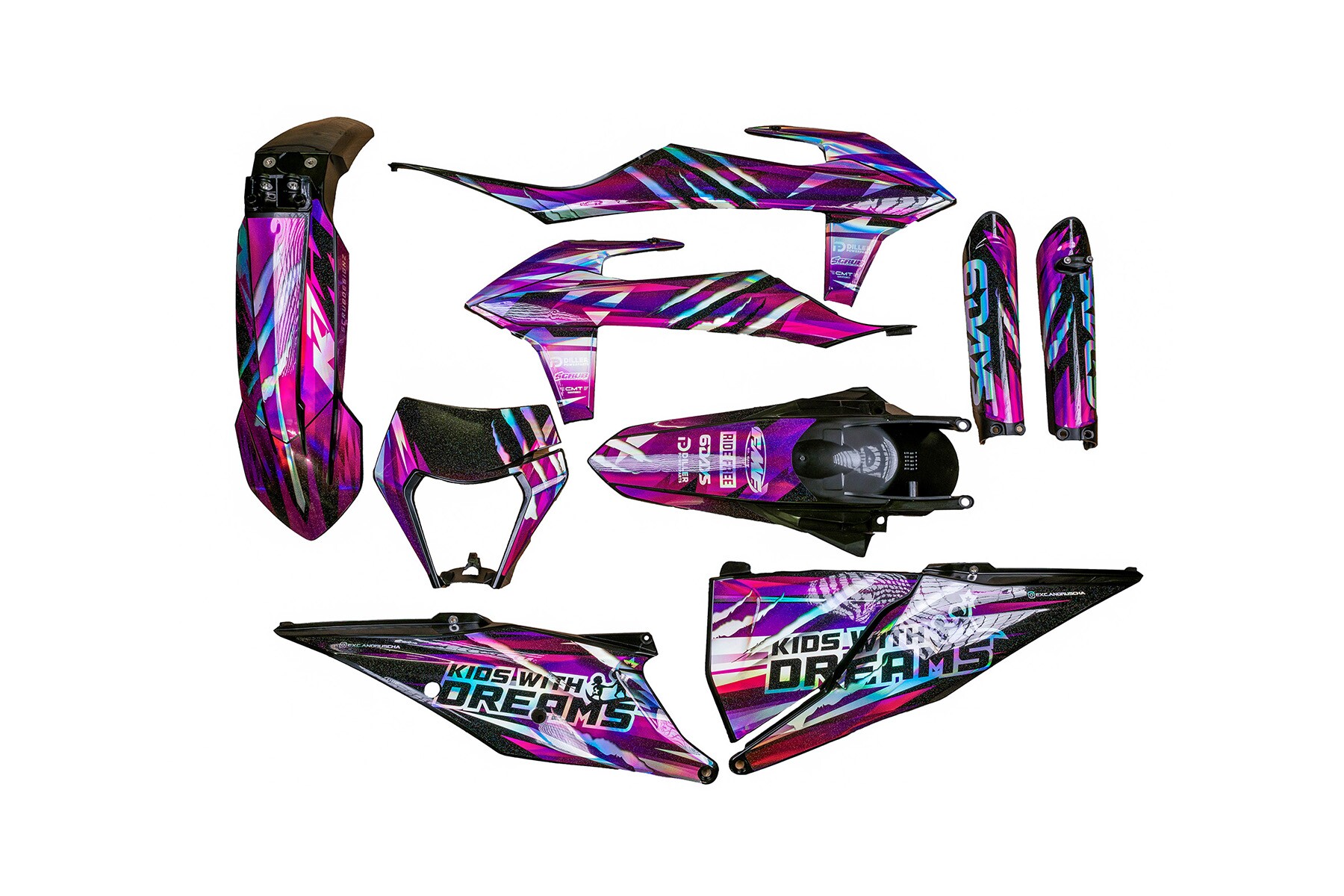 Holo Chrom Dekor auf Plastiks beklebt für MX & Enduro Modelle passend für KTM