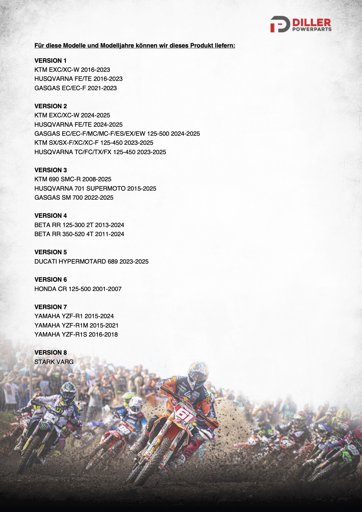 (EXC-F 350, CRF450, …)